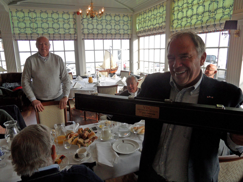 De attente AFC-voorzitter Ad Westerhof verraste onze vrienden tijdens de zaterdag lunch om de club vast te feliciteren en ontving namens de VBC-jubileum commissie een op naam geëtiketteerde biljart etui (met het oog op de toekomst).
