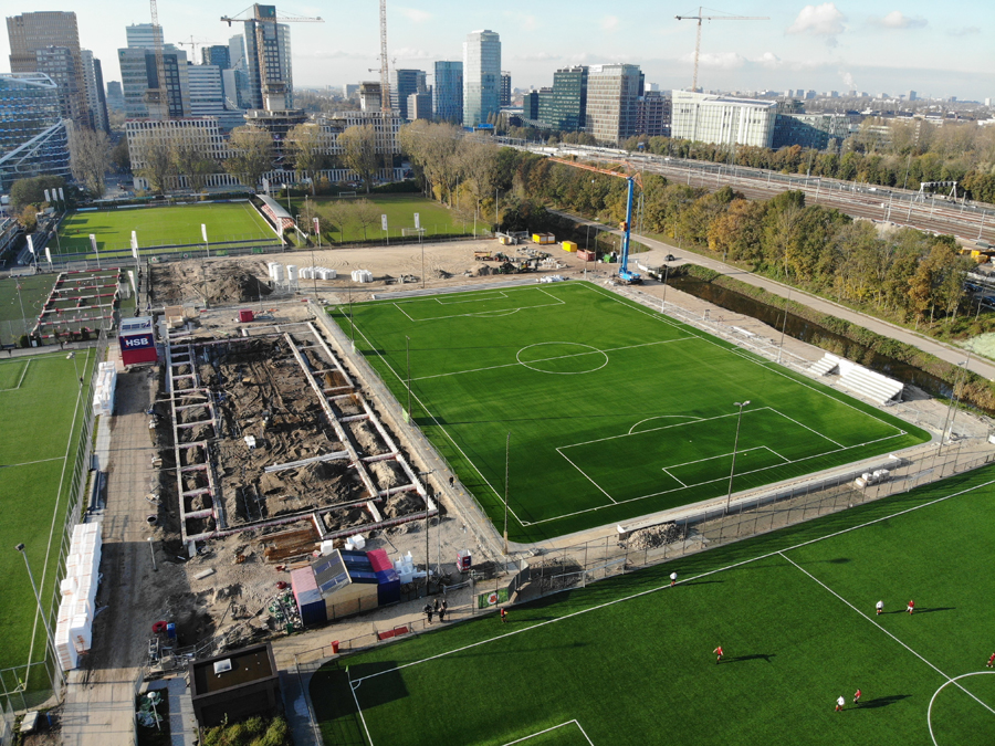 Het aanleggen van kunstgras op het komende nieuwe hoofdveld is gereed..