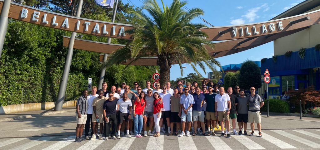 De heren van AFC 1 werden vanochtend al vroeg op Schiphol verwacht – 07:00 uur stond er op de klok. Maar zoals altijd: geen vergeten paspoorten, geen gemiste koffers en vooral geen stress. Alles verliep soepel, en rond 11:00 uur landden we op Venetiaanse bodem. Daar werden we hartelijk ontvangen door Dé Hurwits én – niet onbelangrijk – een zonnetje dat meteen duidelijk maakte dat we in Italië waren.