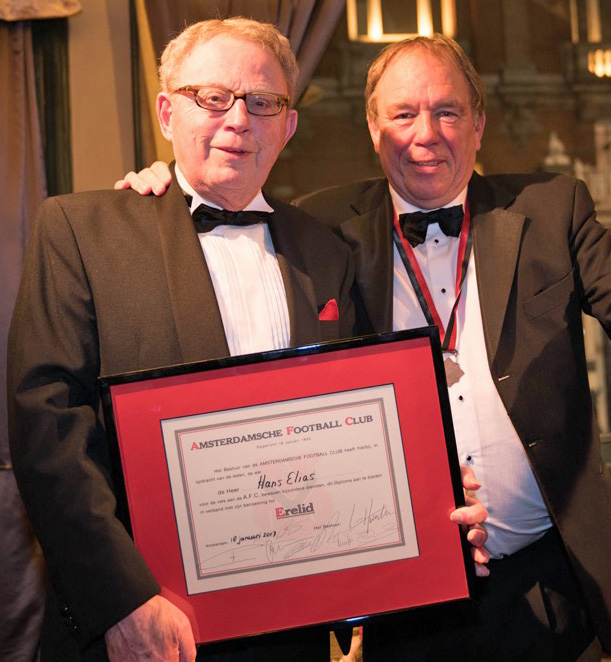 Tenslotte werd Hans Elias verrast met zijn volkomen terechte benoeming tot Erelid voor met name de laatste 17 jaar zijn dagelijkse werkzaamheden als Webmaster, Schakelredacteur en samensteller programmablad AFC-Thuis.