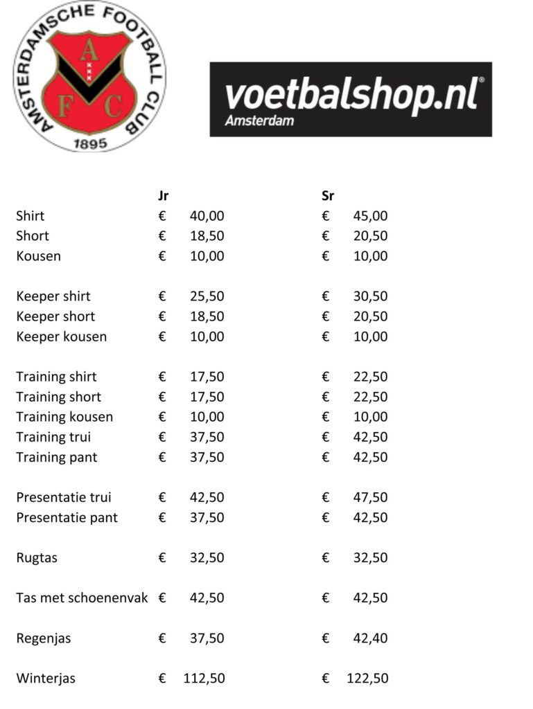 De prijslijst van de AFC artikelen is hieronder eveneens te zien.
