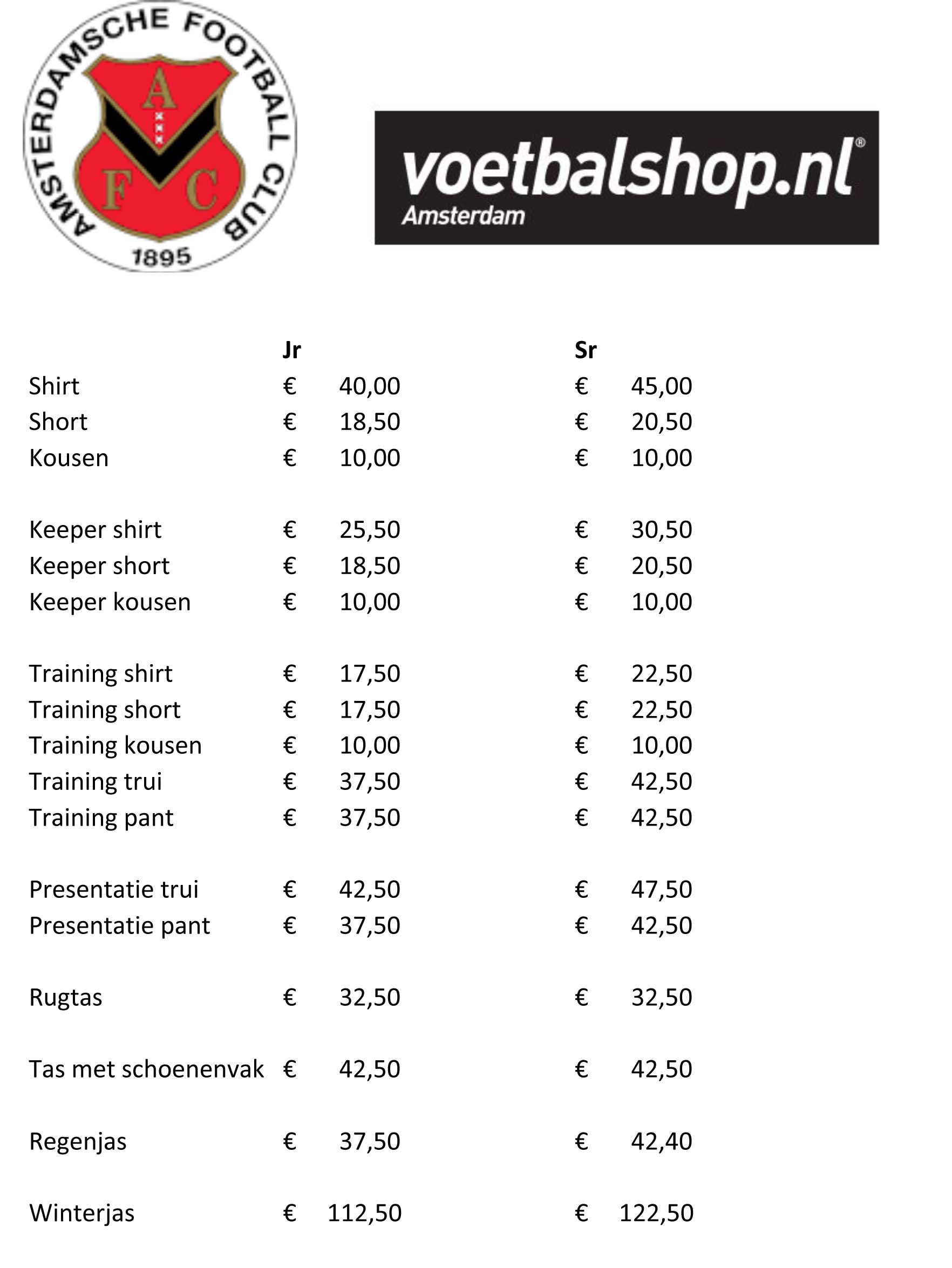 Vanaf heden is onze leverancier van AFC kleding uitsluitend de winkel Voetbalshop Amsterdam.