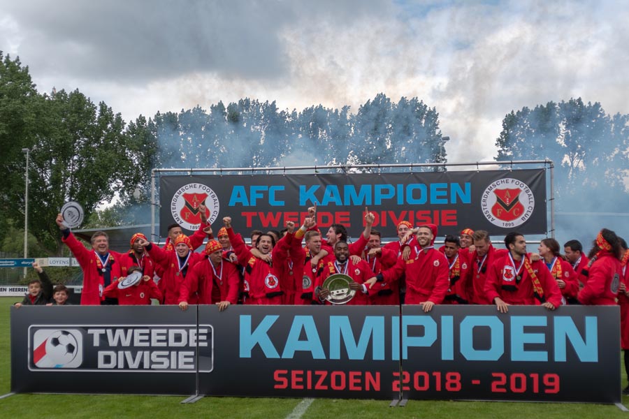 AFC is de overtuigende kampioen van de Tweede Divisie en daarmee de beste amateurclub van dit seizoen. Na 31 wedstrijden, met 21 zeges, 5 gelijke spelen en 5 nederlagen. Met 81 doelpunten voor en 38 tegen. Elf punten meer dan de naaste belagers. Prachtige rapportcijfers.