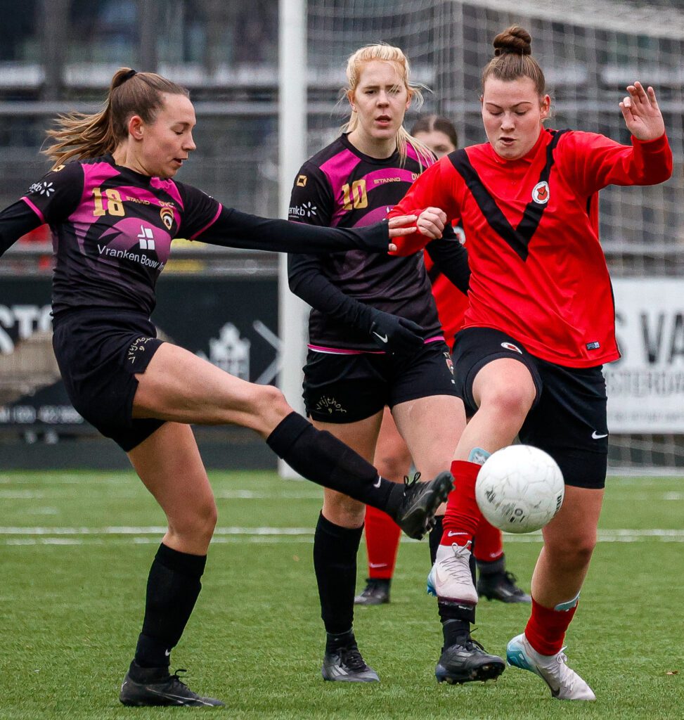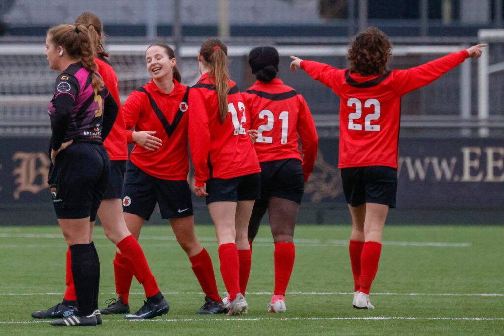 Twee keer werd een overtal goed uitgespeeld met doelpunten tot gevolg. Eefje opende de score waarbij Manoa goed was voor de assist. 1-0. Er werd verdedigend weinig weggegeven, slechts één keer een kopkans, die wel meteen raak was. 1-1. Isa maakte de 2-1 misschien wel de mooiste goal van de wedstrijd.