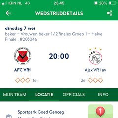 Deze dinsdagavond 7 mei speelt onze AFC VR1 de halve finale Beker, thuis tegen AJAX VR1 ‘Amateur’-elftal!