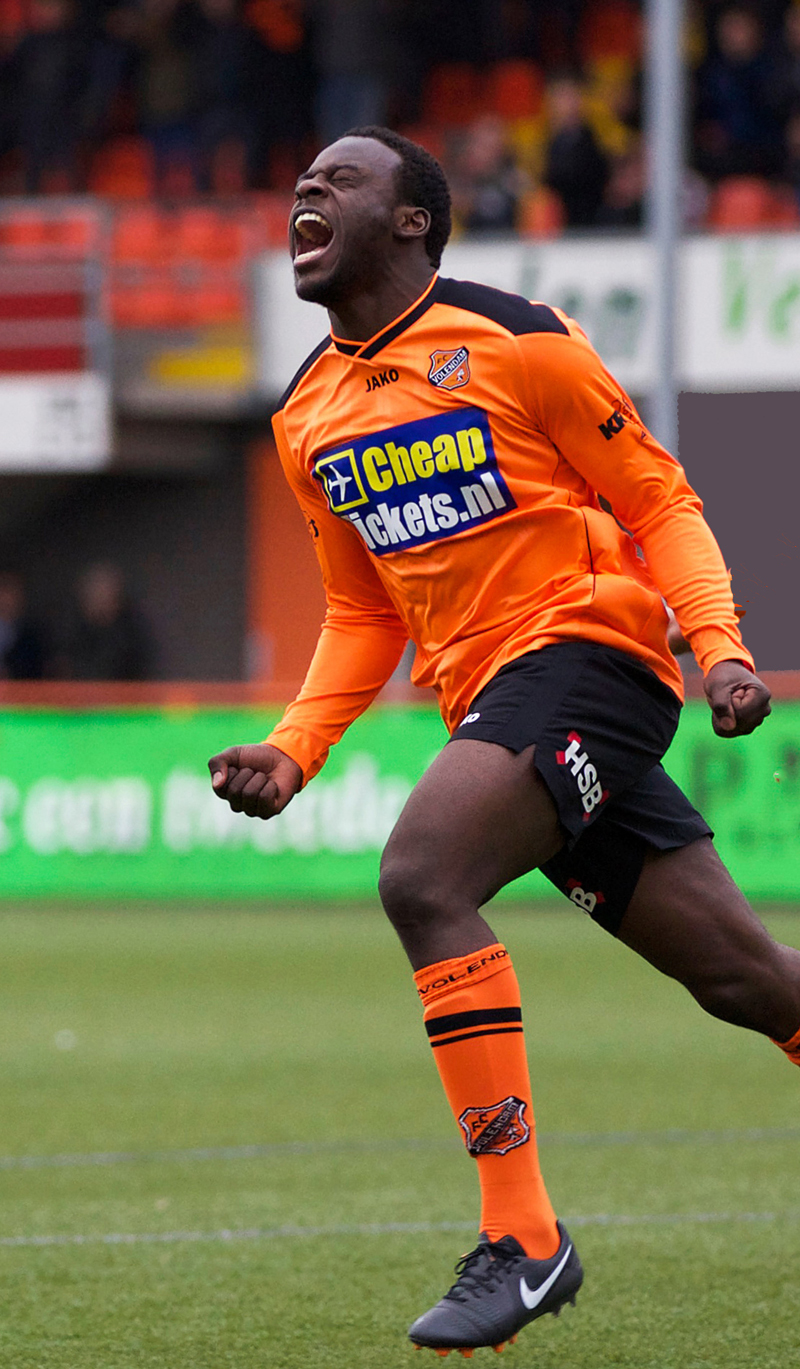 Op de foto loopt Menzo juichend weg nadat hij heeft gescoord voor FC Volendam. Uiteraard hopen wij dat Damien regelmatig voor AFC zal scoren.