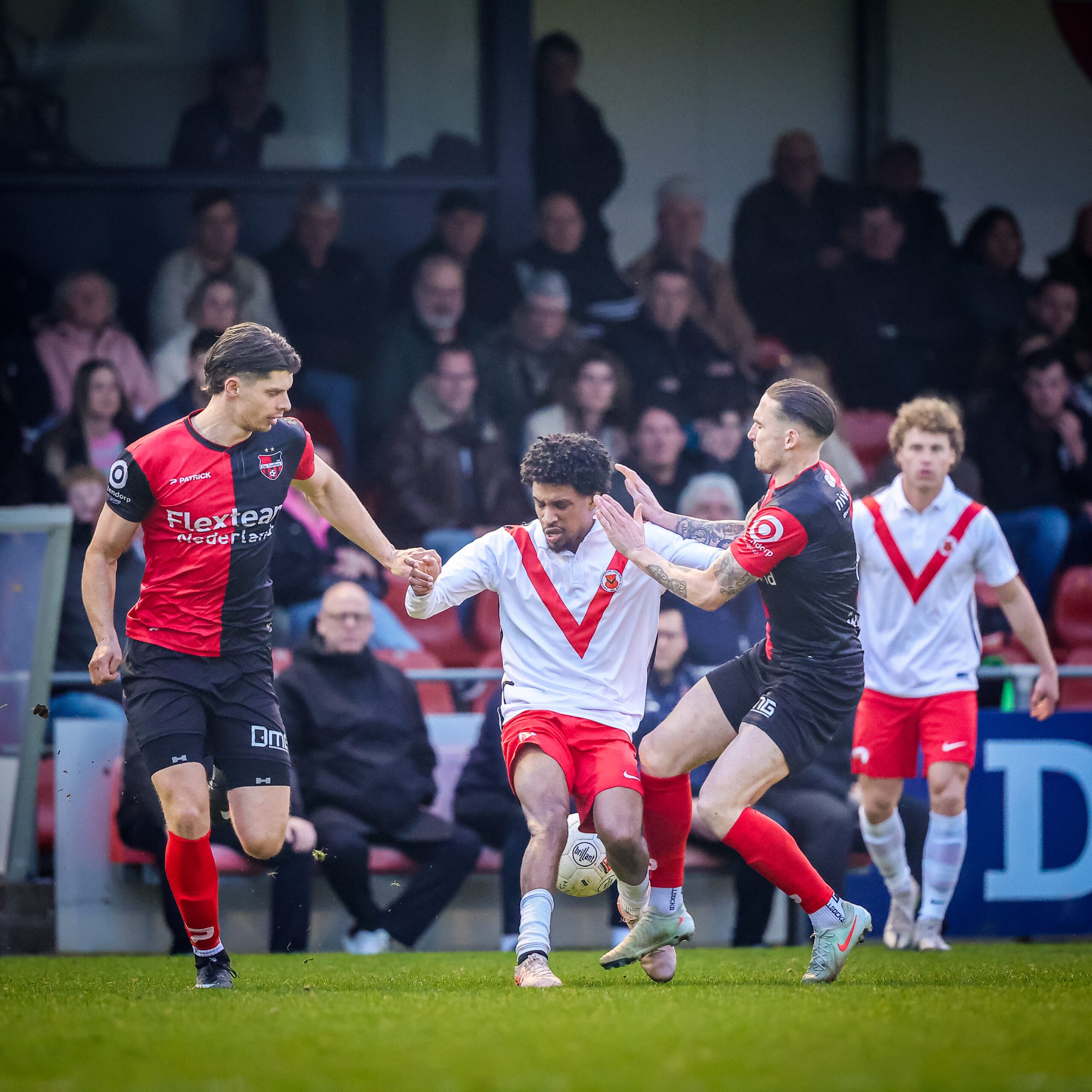 Het is 7 maart en vandaag is teammanager Tim de Groot jarig. Een overwinning op De Treffers zou een passend cadeau voor hem zijn. Passend, maar wel heel lastig, want De Treffers is de afgelopen tijd in ‘the winning mood’. De laatste drie wedstrijden werden gewonnen (Quick Boys 0-2, IJsselmeervogels 1-0 en Kozakken Boys 0-2) en sinds kort behoort ook de titel tot de mogelijkheden voor De Roodzwarten. Het betreft bovendien een thuiswedstrijd op hobbelig natuurgras en dat betaalt zich uit: thuis, op Sportpark Zuid, zijn de resultaten beduidend beter dan buitenshuis. Voor middenmoter AFC vandaag dus een lastig karwei, maar kansloos is de ploeg van Chedric Seedorf bepaald niet. In 2026 werd pas één keer verloren (uit tegen Barendrecht 2-0). Drie keer werd gewonnen (IJsselmeervogels 1-0, Kozakken Boys 1-3, Rijnsburgse Boys 3-2) en drie keer gelijkgespeeld (ACV thuis 1-1, Quick Boys uit 1-1 en thuis Jong Almere 1-1). Verder werd dit seizoen op Sportpark Goed Genoeg met 1-0 gewonnen van De Treffers en afgelopen seizoen won AFC met 3-5 op Sportpark Zuid, wel met een ploeg die wat betreft het basiselftal op acht (!) plaatsten anders was samengesteld als vandaag. We gaan het om 18.00 uur zien als scheidsrechter Andy Wolff voor het eerst gefloten heeft.