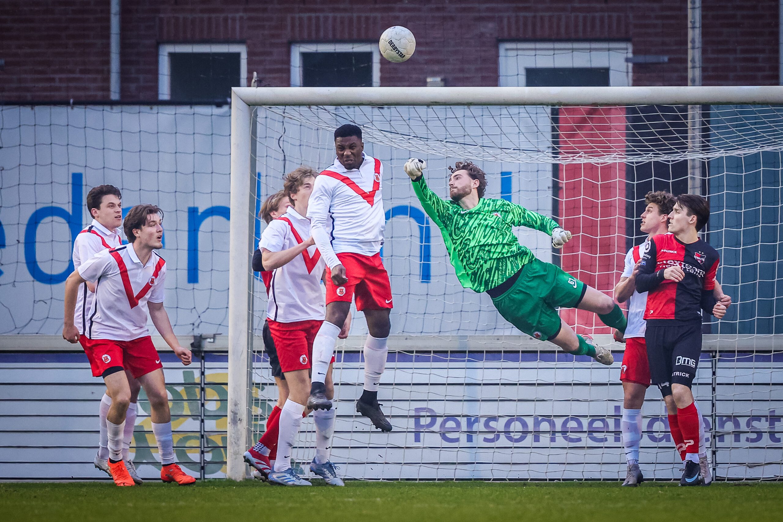 Na afloop is het glas in het gezellige, gastvrije clubhuis voor De Treffers half leeg en voor AFC half vol. In de titelrace was een overwinning voor De Roodzwarten zeer welkom geweest, maar er zijn voor de Groesbekers gelukkig nog negen wedstrijden te gaan. In de top is nog veel mogelijk. AFC bleef vandaag met een jonge ploeg zeer goed overeind. De eerdergenoemde ‘jonkies’ speelden stuk voor stuk een uitstekende wedstrijd. Waarvan akte! Volgende week wacht ons aller eerste oud-kampioen Katwijk, wederom een wedstrijd om naar uit te kijken. Graag tot dan op Goed Genoeg.