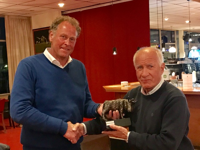 Henk toonde zich een teleurgestelde maar vooral zèèr sportieve verliezer en zag ‘De Boele’ helaas aan zijn neus voorbijgaan en met dank aan Jan van Galen belandde de prijs via de voorzitter in mijn bezit.