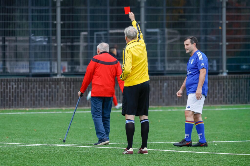 Voorafgaand aan de wedstrijd tegen Muiden & Weesp werd een elftalfoto gemaakt van de 45+2, met Marcel, die deze week 90 gaat worden als stralend middelpunt. Toen hij echter op het veld zijn oude linksbuitenpositie dreigde in te nemen, nam de scheidsrechter M & W in bescherming door hem van het veld te sturen.