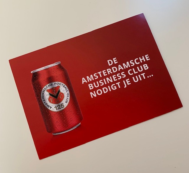 Beste AFC-er, als goede start van het seizoen hebben wij (De Amsterdamsche Business Club) twee weken geleden bijgevoegde ansichtkaart laten versturen naar alle betalende AFC leden, sponsoren en ABC leden. Op vertoon van deze kaart kan je tot 1 oktober een gratis drankje aan de bar in het clubhuis van AFC halen.
