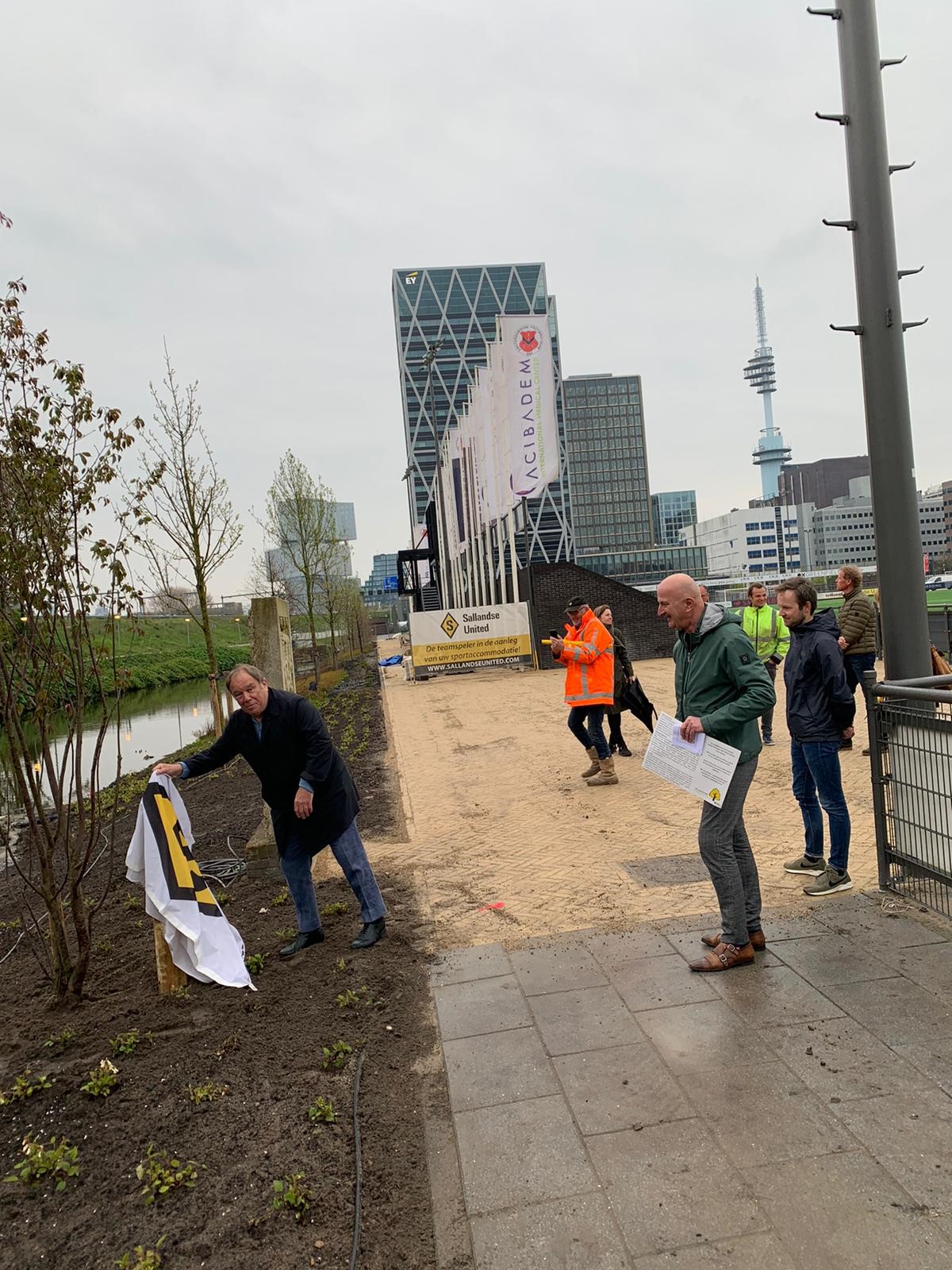 Onder toeziend oog van een aantal Zuidas – en Gemeente ambtenaren en een hele delegatie van de “Sallandse Wegenbouw“ heeft AFC een boom in ontvangst genomen, aangeboden door de heer Johan Middelkamp, directeur en eigenaar van het bedrijf dat de velden en accessoires van ons nieuwe sportpark heeft aangelegd.