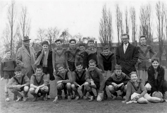 Staand vlnr: P. Janus, de heer Janus (leider), Peter Roosenschoon, Henk de Boerdere, Frank Leonard, Hans Loonstijn, Wouter Amesz, Rik de Boer, Johan de Bie (jeugdcommissie) en Hans Rodenburg.