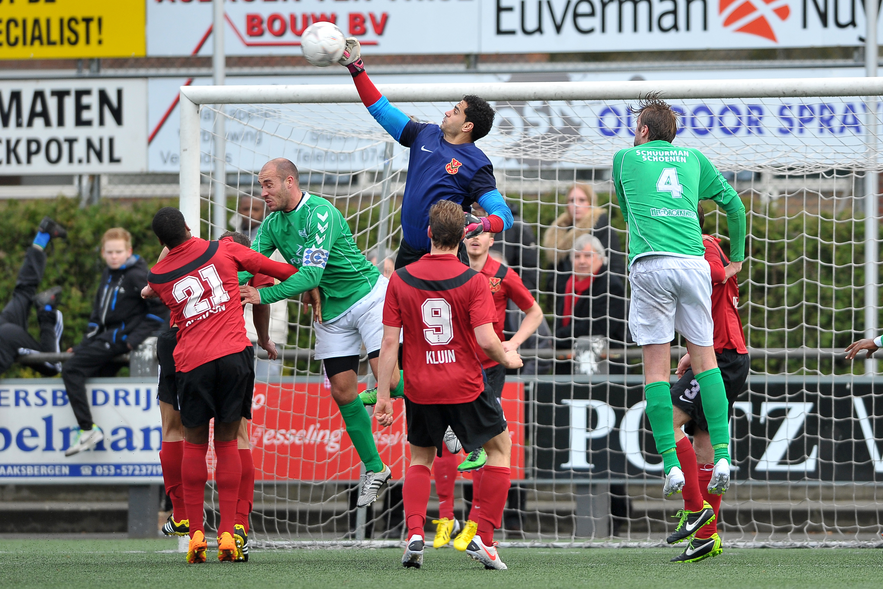 Na rust, zoveel is wel duidelijk, dient AFC uit een ander vaatje te tappen om de groen-witte tien mans formatie van trainer Wilco Klop eronder te krijgen. Er zal, zo zal onze trainer Willem Leushuis ongetwijfeld hebben laten weten, meer strijd geleverd moeten worden en aanvallender moeten worden gespeeld. En zo gebeurt het ook. Het resultaat blijft niet lang uit. Een door Enrico Patrick genomen corner wordt bij de tweede paal gedecideerd door Jasper binnengekopt (1-1) . Met dit doelpunt onderstreept Jasper nog eens zijn waarde voor de ploeg. Hij vervangt de door een blessure afwezige Geoffrey Galata voortreffelijk. Na de gelijkmaker zijn onze jongens er duidelijk nog niet. Weer is het Bas ter Hogt die onze defensie met een handige beweging het nakijken geeft (2-1). En even later is het bijna 3-1, maar Youssef weet knap te redden. Daarmee is de Haaksbergse koek op en toont AFC nog eens aan dat het dit seizoen over veerkracht beschikt. De druk op het doel van keeper Brammer neemt steeds meer toe en uit een zwak verdedigde bal slaat Wout Meulemans, ingevallen voor Daan Sutorius, met een splijtende schuiver in de 64e minuut toe (2-2). Deze goal is, zo blijkt uit de reacties van zijn medespelers, Wouter van harte gegund. De kansen zijn nu echt gekeerd en in de 80e minuut bekroont Laurens Samsom zijn sterke spel met het beslissende doelpunt (2-3). Zijn harde, van richting veranderde schot verdwijnt onhoudbaar onder de lat. In de 89e minuut maakt Randel Shakison het karwei helemaal af op aangeven van Sjoerd Jens, die Enrico Patrick is komen vervangen (2-4).