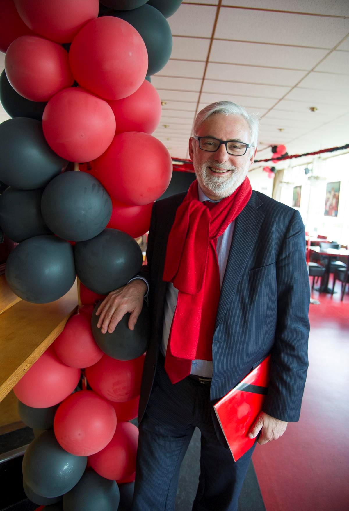 AFC voorzitter Machiel van der Woude is heel trots op zijn club en hoopt op een prachtige afsluiting van het seizoen. ,,In ons hele lange bestaan hebben we dit nog nooit bereikt”, zegt hij opgetogen in het clubhuis aan de Boelelaan waar een grote boog van rood-zwarte ballonnen al vast de verwachte feestelijkheden aankondigt.