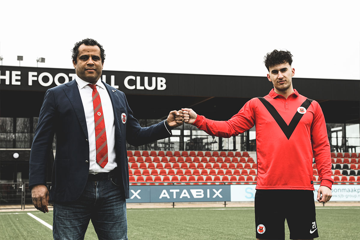 AFC trainer Uli Landvreugd verwelkomt een nieuwe speler in de selectie van AFC 1: Koen Wesdorp.