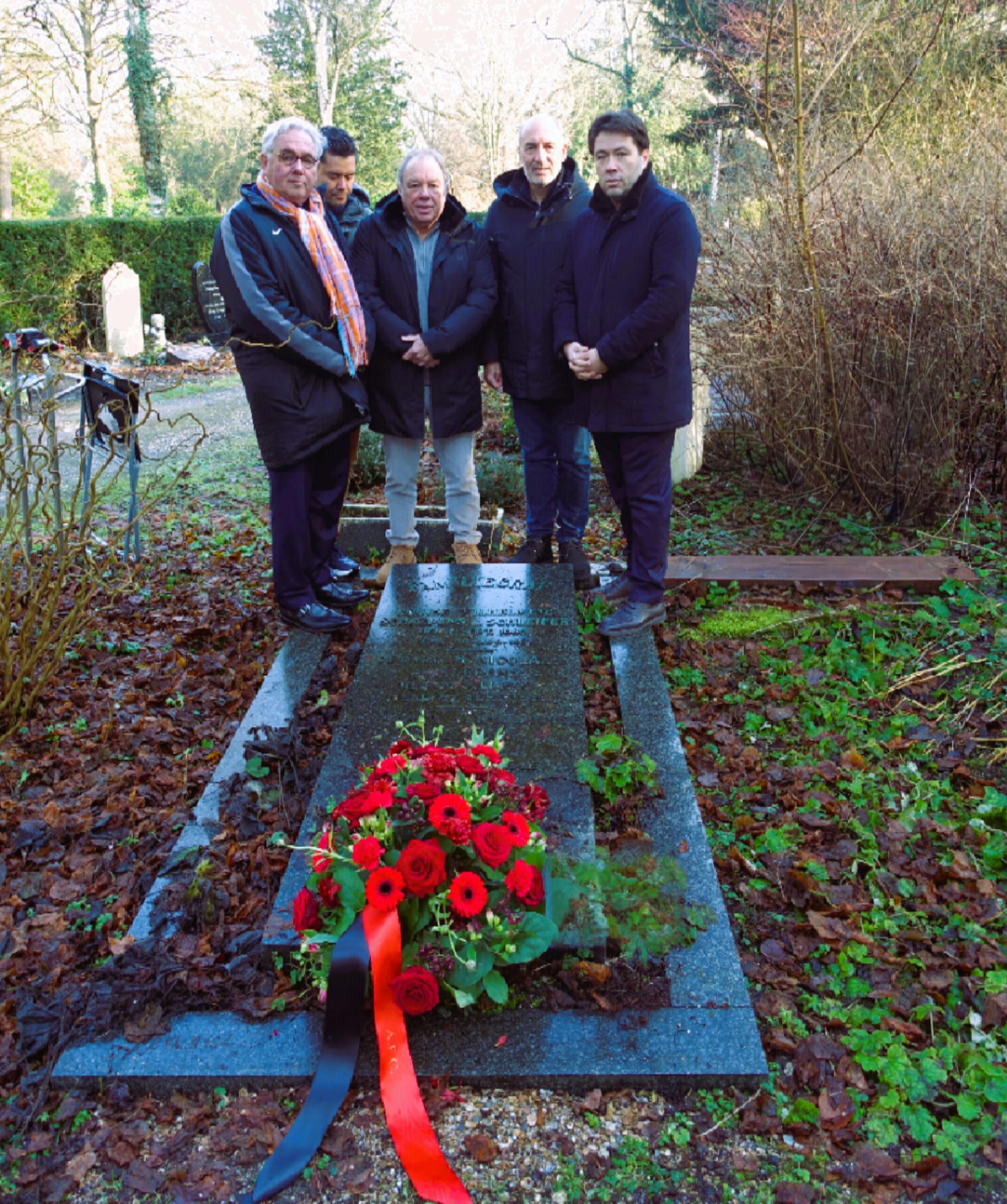 Zij hebben op het graf van Schaf Scheepens, de oprichter van AFC, een bloemstuk gelegd.