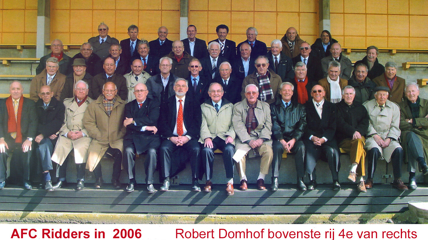 Op 5 november 2005 wordt Robert Domhof samen met Jos Lonnee, Tom Nooij, Frank Reddering en Roel Ridderikhof tijdens de Zilveren Ploeg bijeenkomst benoemd tot AFC-ridder. In het geval van Robert twee jaar te laat, want hij staat al sinds 1953 ingeschreven als lid. In zijn nieuwe hoedanigheid woont hij de eerste Ridder-lunch bij op 4 april 2006 (zie foto) en is de volgende jaren als het even kan aanwezig bij dit unieke evenement. Dat geldt ook voor het Jaardiner en de Zilveren Ploeg bijeenkomsten, die hij altijd met veel plezier bijwoont. Samen met zijn vriend en collega-ridder Jos Lonnee, jarenlang de rots in de branding van AFC 1, die bij hem in de buurt (Bleiswijk) woont en graag met hem meerijdt. Bij bijzondere wedstrijden van het eerste zit Robert op de tribune, op Goed Genoeg, maar ook bij uitwedstrijden bij hem in de buurt. Zoals bij Excelsior Maassluis, waar hij ook sponsor is. Bij de wedstrijden Excelsior – AFC is Robert eregast en wordt in de pauze en na afloop van deze wedstrijden uitgenodigd aan de bestuurstafel. Hij maakt er geen geheim van van welke club hij supporter is. AFC!
