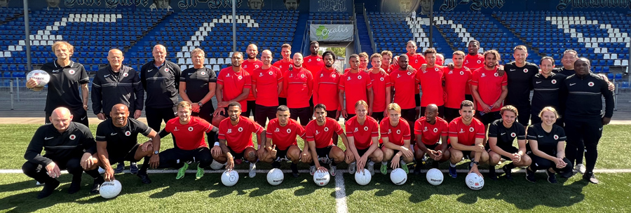 – Middelste rij van links naar rechts: Hans van Rossum (materiaalman); Kees Kalk (videoanalist/spelhervattingen specialist); John de Lange (keeperstrainer); Cor Middelkoop (sportverzorger); Raily Ignacio, Matthijs Jesse; Melvin Platje; Segun Owobowale; Gladwin Curiel; Milan Eliasar, Dalian Maatsen; Cody Claver; Daniël Zoutberg; Kenny Teijsse; Maarten van der Schaaf (performancetrainer); Benno Nihom(hoofdtrainer); Chedric Seedorf (assistent trainer);