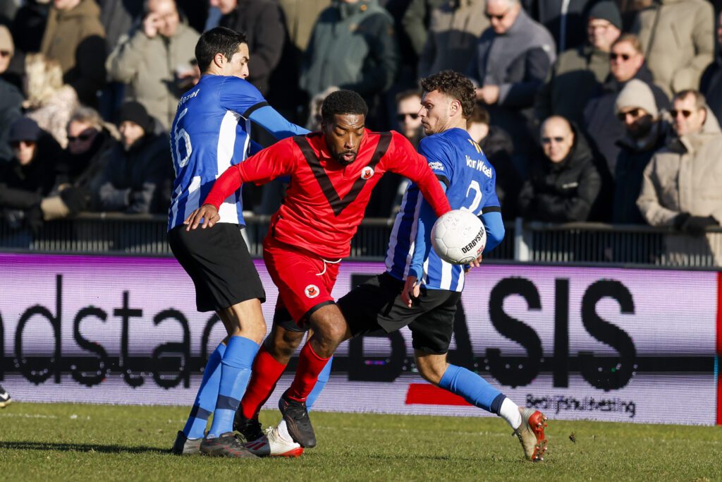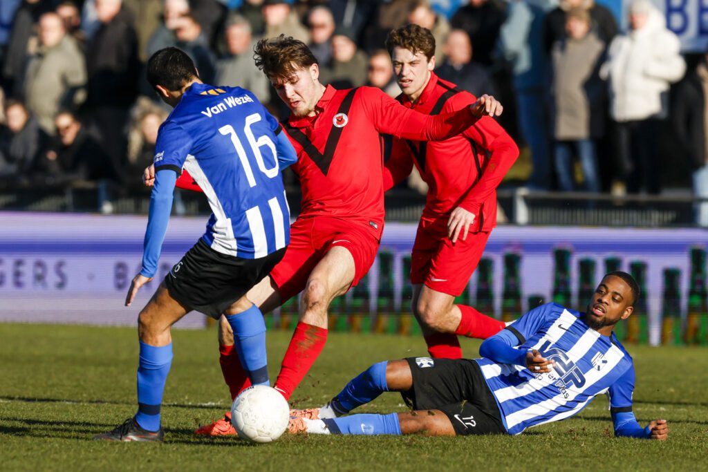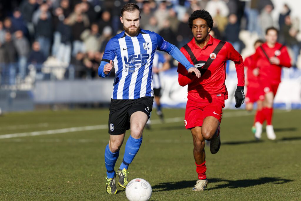 De blauw-witten missen vandaag ook een aantal spelers, waaronder Lukas Hamann, middenvelder Leonard de Beste en verdediger Toer Bouman. Maar het zal trainer/coach Adrie Poldervaart niet al te veel deren want er is na het vertrek van verschillende bepalende spelers na het eclatante kampioensjaar ook meer dan voldoende aangetrokken: Remi Akani (Willem II-jeugd), Tren Drexhage (BVV Barendrecht), Tom Noordhoff (Spakenburg), Riley Reemnet (Noordwijk), Arantis Roep (Noordwijk), Xander van den Berg (Kon. HFC) en Joël van Kaam (ACV Assen) beginnen in de basis, David Garden (FC Eindhoven), Sem Kroon (ADO’20), Frank van den Bosch (Sportlust ’46) en Quinten van der Helm (SV Honselersdijk) op de bank. In de opstelling van AFC zien we weinig verrassingen. Door het ontbreken van Timo Letschert start Milan Klopper, als rechtsback, waardoor Indy Lee, naar links verhuist. Verder is opstelling gelijk aan die tegen Jong Almere, een week eerder. Dus met Noach Shenkman en Noa Benninga op het middenveld, Radjenio Fonseca, Yanic Wildschut en Leandro Kappel in de aanval.