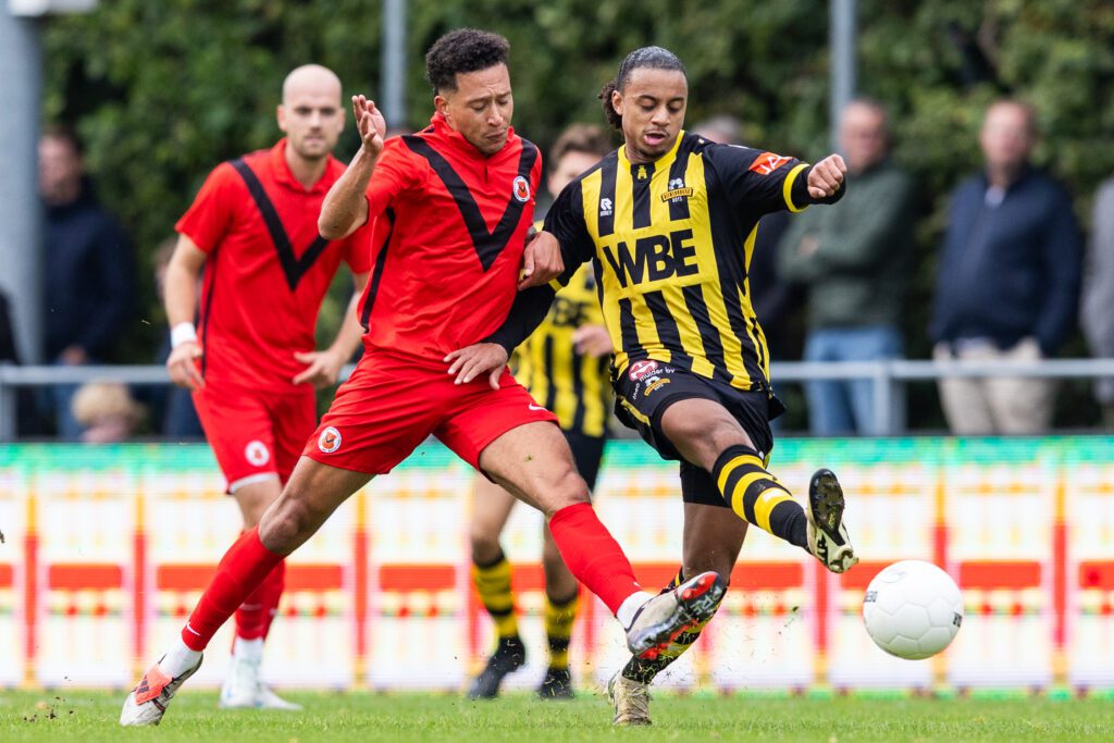 Als de in geel-zwart en volledig rood gehulde ploegen onder leiding van scheidsrechter Sam Dröge het natuurgras betreden ontbreekt Dani van de Moot, al jaren de topschutter van Rijnsburgse Boys. Van der Kooij heeft gekozen voor Delano Asante en Ilias Kariouh op de vleugels, Van der Weijden in de spits, met Jeroen Spruijt daarachter. Een sterk kwartet. Van de Moot begint op de bank. Mitch van Kempen, vorig seizoen debuterend in ons aller eerste en inmiddels basisspeler bij RBB, ontbreekt door een blessure. Jammer! Bij AFC beginnen Matthijs Jesse en Noa Benninga op de bank. Benno Nihom start met dezelfde basis als tegen Jong Sparta, ‘never change a winning team’.