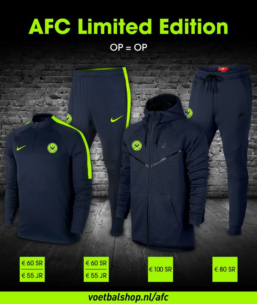 Het eerste elftal heeft dit jaar een unieke trainingscollectie laten ontwerpen door Voetbalshop. Opvallend aan deze collectie is het AFC logo. Deze is ontworpen in een 'voltgele' kleur, welke matcht met de accenten van de NIKE kleding.