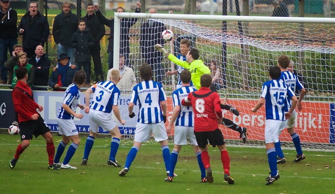 Onderstaand het 2500e doelpunt; in de Topklasse zondag;  Tim Wulffraat staat uiterst links