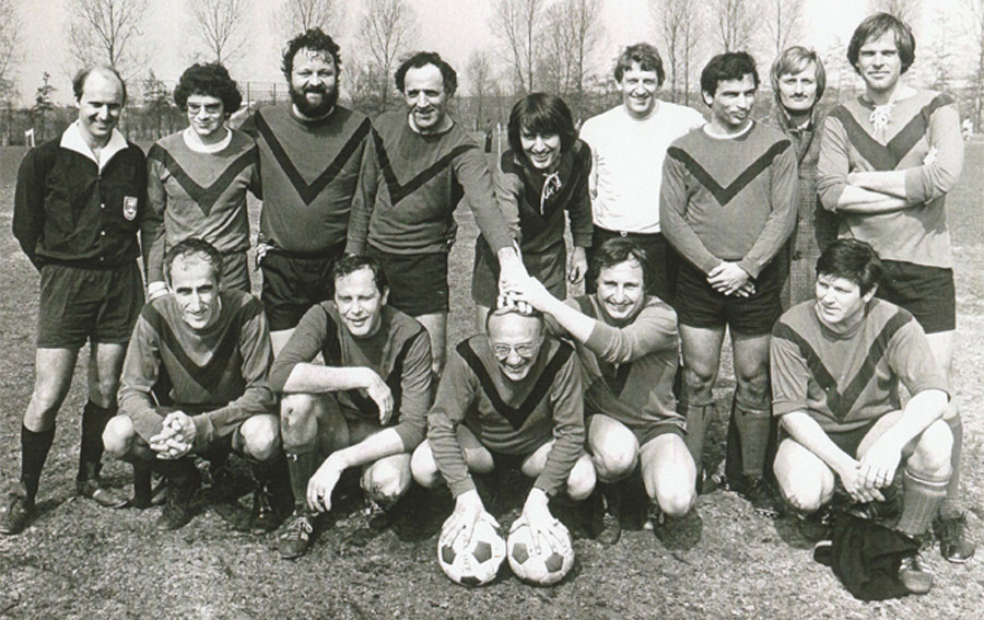 Daaronder een foto uit 1980 voorafgaand aan een wedstrijd.