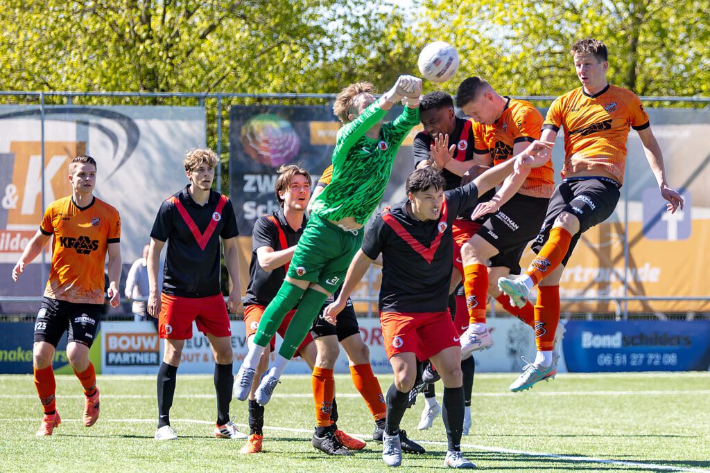 Aan de andere weet Daniël met nog twee gave reddingen zijn doel deze middag schoon te houden. Prima de luxe! Als de scheidsrechter er na 93 minuten een eind aan maakt gaat deze wedstrijd met 0-3 de boeken in en is de doelstelling voor vanmiddag, handhaven, door AFC ruimschoots gehaald. Maar ook onze tegenstander prijst zich gelukkig, want door het verlies van Excelsior Maassluis én IJsselmeervogels heeft RKAV Volendam zich vanmiddag gehandhaafd. Proficiat!