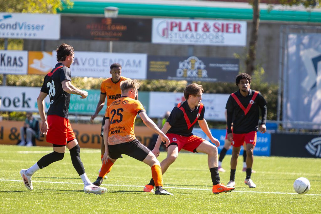 De belangrijke wedstrijd tegen RKAV Volendam is verdiend door AFC gewonnen. De basis voor deze zege werd gelegd in de eerste helft toen The Reds de lakens uitdeelden. De 0-2 voorsprong in het Hein Koning Stadion werd bij rust bereikt door doelpunten van topscorer Delano Gouda en youngster Osa Okunbor. In het tweede bedrijf beet de thuisploeg feller van zich af, hing een tegentreffer af en toe in de lucht maar bleek Daniël Nolet niet te passeren tussen de palen. Hij werd voor zijn goede keepen ten slotte beloond met een clean sheet. Ook AFC kreeg na de thee de nodige kansen, maar meer dan een door Delano benutte penalty leverden die niet op. Door deze 0-3 zege handhaven The Reds zich op het hoogste amateurniveau. Omdat de onderste drie ploegen verloren speelt ook Volendam volgend seizoen weer in de Tweede Divisie.