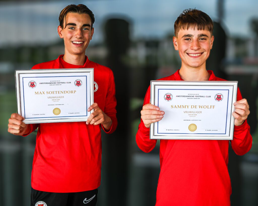Sammy de Wolff en Max Soetendorp voetballen zelf bij A.F.C. in de middenbouw, maar zijn daarnaast op het veld te vinden als scheidsrechter.