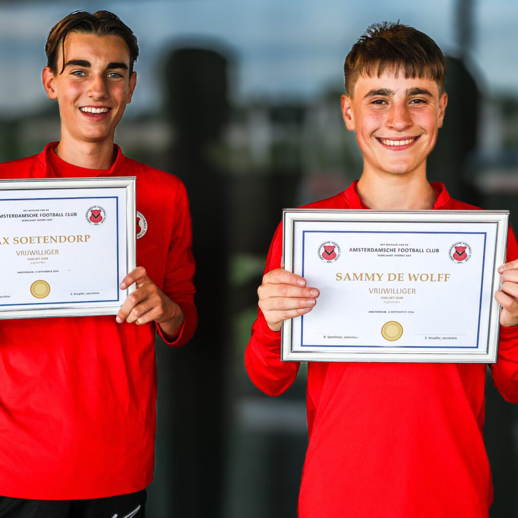 Sammy de Wolff en Max Soetendorp voetballen zelf bij A.F.C. in de middenbouw, maar zijn daarnaast op het veld te vinden als scheidsrechter.